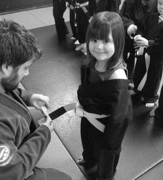 Progression through Jiu-jitsu ranks involves four promotional stripes on each belt before receiving the next rank. The coloured belt ranking system is as follows: white, blue, purple, brown and finally the black belt. The journey to black belt at a reputable school can take anywhere from 8-13 years depending upon how frequently a person trains.
